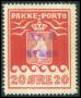 1915. 20 øre rød med linie stp. Nr. 1 Avane: Agto x 2.