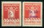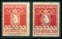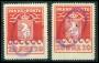 1915. 20 øre rød med linie stp. Nr. 12 Avane: Jakobshavn og 13 Avane: Rhodebay.