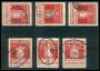 1915. 20 øre rød med linie stp. Nr. 23 Avane: Nugssuag, Nr. 24 Avane: Niakornat og Nr. 25 Avane: Kaersut.
