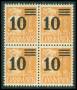 1934. 10/30 øre orangegul i 4-blok med variant: Øverste bjælke afskåret til højre.