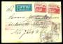 1937. Regeringsjubilæum, 10 Øre, brun (2) og 15 Øre, rød (2). Luftpostbrev sendt fra AUNEDE 17.8.37 til New York i U.S.A. Modtageren kan ikke findes og brevet returneres.
