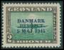 1945. 2 kr. med meget svagt omv. overtryk. Sjælden. Sign. Stolow.