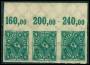 1922. 4 mk. grøn i utakket 3-stribe, hængsel i marginal. Mi. (226aU) 300 €