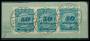 1923. 50 md. blå savtakket i 3-stribe på klip stp. 27.11.23, uden garanti. Mi. (330B) (løse) 2700 €