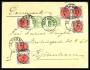 1901. 3 c. blå/rød x 6 og 1 c. grøn x 2 på brev til Danmark.