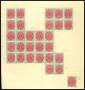 1876. 1 c. græsgrøn/purpurlilla tryk 2 pos. 81/85-91/95 med 4 tynde rammer i pos. 91-93 og 95 opklæbet på papir. AFA (*) 23800,-