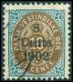 1902. 8/10 c. blå/brun omv. rm. kort tak i nord. AFA 4000,-