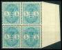1900. 5 c. blå i 4-blok med sidemarginal. AFA 1600,-