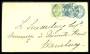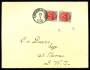 1902. Provisorie, 2 CENTS 1902 / 3 Cents, 9. Tryk (parstykke). Overfrankeret lokalbrev sendt fra CHRISTIANSTED 21.5.1902 til St. Thomas. Postvæsenet har kun annulleret det ene mærke.