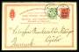 1900. Våbentype, 1 Cent, grøn. Opfrankeret på helsagsbrevkort 1 CENT 1902 / 3 Cents, rød. Sendt fra ST.THOMAS 22.4.1902 til LØGSTØR.