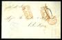 1850. Brev med fuldt indhold dateret Puerto Cabello den 7. september 1850, sendt til Bordeaux. Transitstemplet på det engelske postkontor i ST.-THOMAS 16.SP.1850, i London 5.OC.1850 og CALAIS 8.OCT.50...