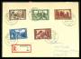 1950. Folkehjælpen, komplet sæt. Rekommanderet brev sendt fra SAARBRÜCKEN 27.11.50 til Nördlingen i Schweiz. AFA: 3.000 (for løse mærker).