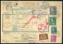 1942. Hitler, 10 Kurona, mørkgrøn og 20 Kurona, mørkviolet med flere. Adressebrev for 1 værdipakke (med hårnet af kunstsilke) sendt fra CHOTIEBORSCH 2.II.44 til København i Danmark. Transitstemplet BE...