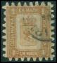 1866-67. Våbentype, 5 Penni, brun. Annulleret LOVISA.