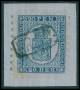 1866-67. Våbentype, 20 Penni, blå. Annulleret med rammestempel FR.KO på lille klip.