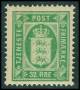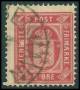 1875. 8 øre rød med variant: Beskadiget hjørne øverst til højre.