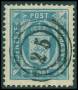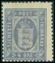 1875. 4 øre blå med variant: Hvide rammelinjer krydser hinanden.