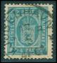 1875. 4 øre blå, med variant: nederste højre hjørne brudt.