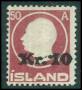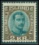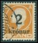 1912. 1 kr. citrongul med markant stor hvid farveplet i Island.