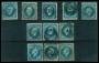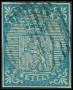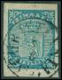 1867. 4 sk. blå med beskrevet variant, minus takker i højre side.