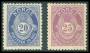 1878. Oskar II sæt, 1,50 og 2 kr. med anelse blå/rød afsmitning. Facit 5000,-