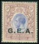 TANGANYIKA. G.E.A. 1921. 5 R. mørklilla/ultramarin. Mi. 225 €