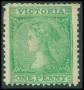 VICTORIA. 1865. 1 d. grøn korte tk. uden lim. SG 100 €