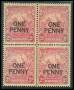 BARBADOS. 1947. 2 d. karmin i 4-blok med variant: Short right arm to Y brunlig lim.