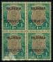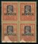 BURMA. Tjeneste. 1937. 1 R. brun/grøn i 4-blok, brunlig lim. SG 168 £