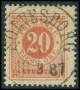 1886. 20 øre orangerød LUX stp.