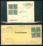 1934. 1 Øre, grønsort. To breve med hhv. 4-blok og 2×par. Begge på enkeltportoforsendelser til Lemvig.