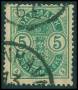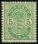 1895. Våbentype, 5 Øre, grøn (par). Annulleret med liniestempel Bøvlingbjerg i violet farve.