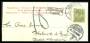 1905. 5 øre grøn single på smalformet postkort (klippet i venstre side) med ramme stp. Utilstrækkelig frankeret.