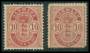 1882. 10 øre anilinrosa uden lim med fejl samt alm. rød. AFA 3700,-