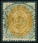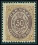 1875. 50 øre brun/blåviolet med omv. vm. minus tak i toppen.