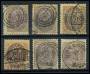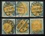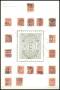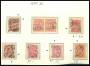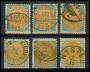 1895. 100 øre grå/gul, omv. rm., planche med 6 mærker, hvoraf 3 er med ret rm. og 3 med omv. rm. AFA 1920,-