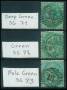 1855. 1 sh. i alle 3 nuancer. SG. (71-73) 1250 £