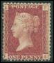 1858. 1 d. mørkrosa pl. 207 uden lim. SG 80 £