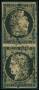 1849. 20 c. sort i lodret tete-beche par, begge mærker med rifter og et med mindre tyndhed. Sign. Udtalelse Goebel. Yvert (3e) 9.500 €