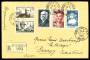 1951. Charles Péguy, 12 Francs, brun med flere. Rekommanderet brev sendt fra GRENOBLE 10.1.1951 til Perroy i Schweiz.