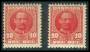 1907. 10 øre rød. 2 stk. med kliché ridser.