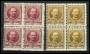1907. 50 og 100 øre Frederik VIII i 4-blokke, hængslet på 2 mærker i hver blok. AFA 6400,-