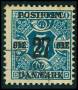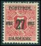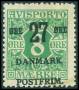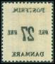 1918. 27/8 øre grøn med kraftig forskudt overtryk.