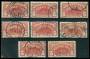 1915. 5 kr. posthus x 8 i lidt blandet kvalitet.