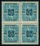 1918. 27/5 øre blå vm. III i 4-blok. Attest Grønlund.
