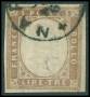 SARDINIEN. 1855. 3 L. kobberrød uden garanti. AFA 2800,-