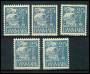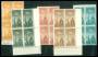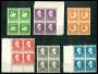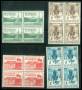 1933-34. 20 øre - 5 kr. i 4-blokke, hængslet på 2 mærker i hver blok. AFA 4818,-