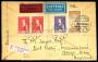 1939. 1 kr. brun samt Røde Kors mærker på ekspres luftpost R-brev til England.