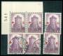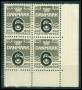 1940. 6/8 øre grå i 4-blok med variant: Hak foroven i 6-tal.