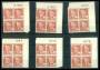 1950. 25 øre rød i 6 forskellige Marginalblokke.